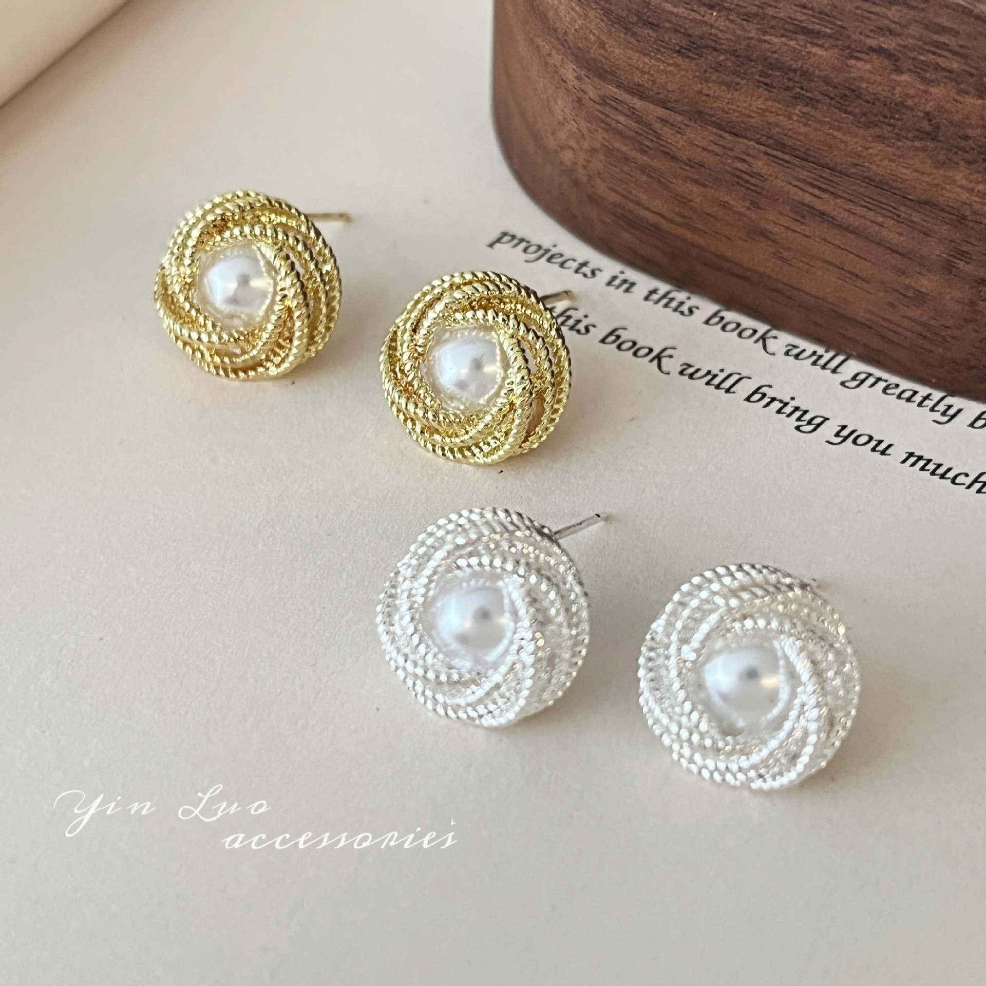 Shijia Steamed Bun Powder Light Pearl Earrings S925 Gold Needle Supports Testing Silver Needle Earrings Accessible Luxury Mosquito Coil Disc Ear Clip