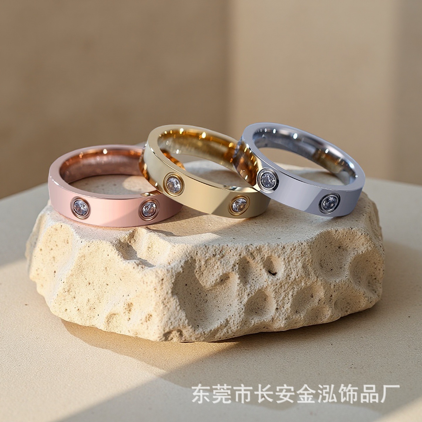 Cross-Border Ka Simple Titanium Steel Couple Rings, Non-Fading Pigment Rings, Closed-Mouth Nail Rings, Wholesale for Men and Women