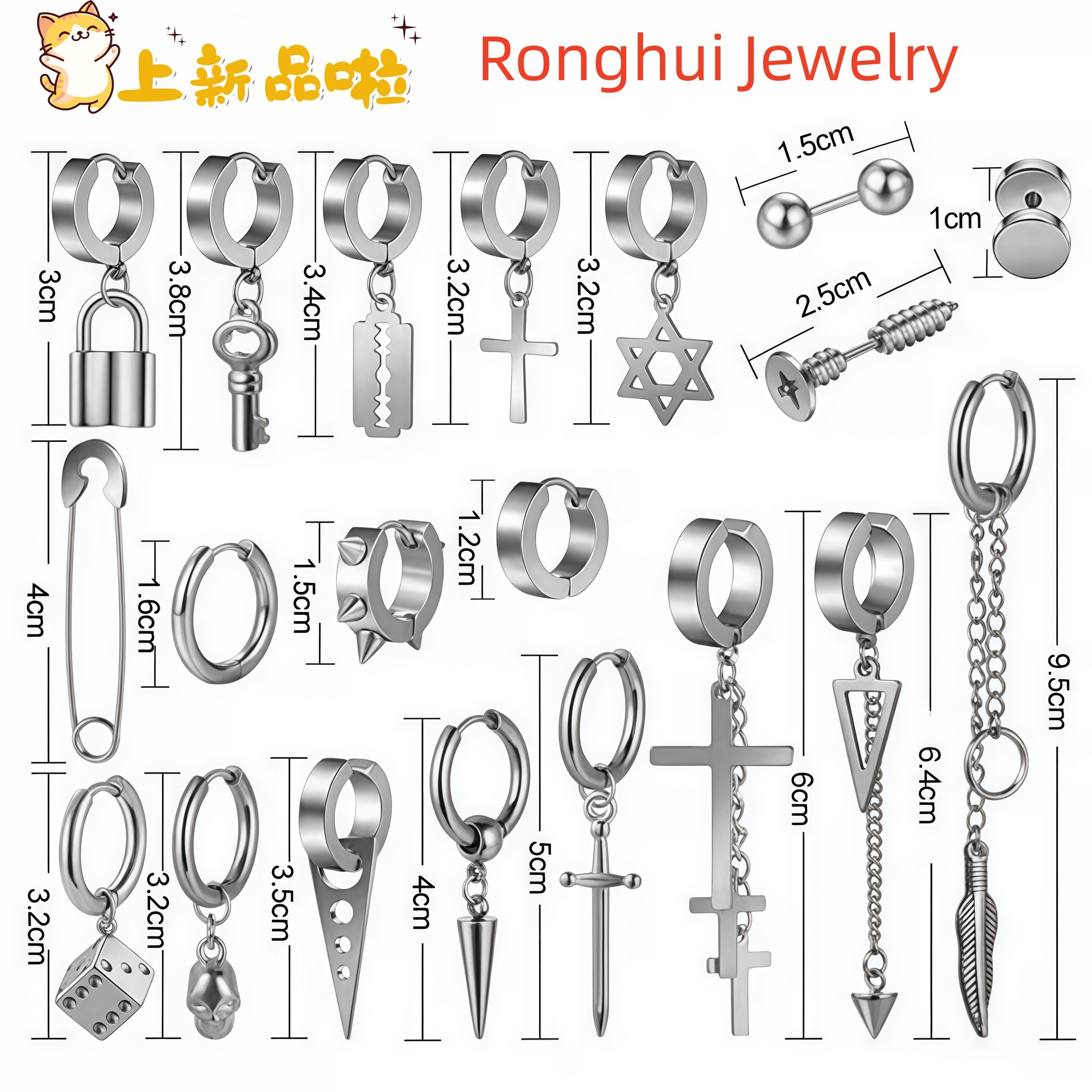 Cross-Border Black Suit Earrings Trendy Korean Internet Celebrity Temperament Personality Fashion Men's Stainless Steel Earrings Stud Set