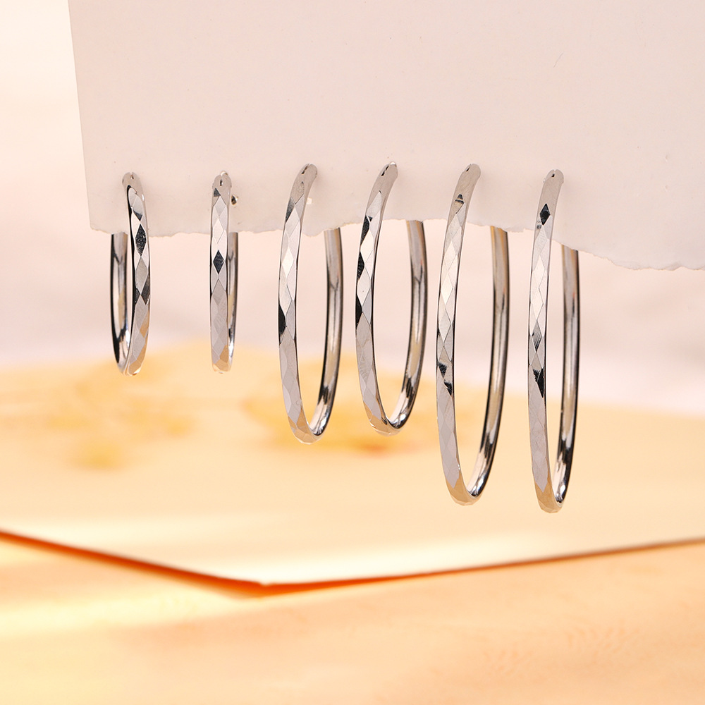 Exaggerated 3mm Large Circle Earrings Simple Versatile European and American Round Titanium Steel Coil Earrings Stainless Steel Hoop Earrings Ear Cuffs