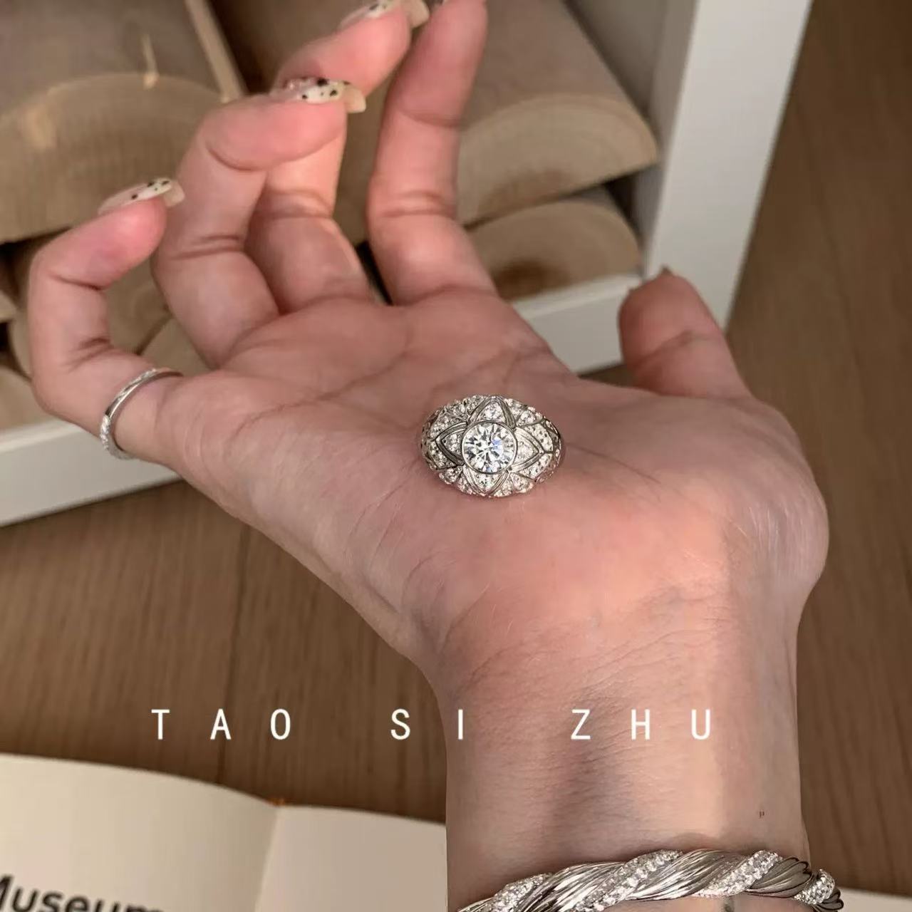 Ins Cold Style Zircon Cross Ring Women's Opening Adjustable Zircon Fashion Stylish High-End Ring