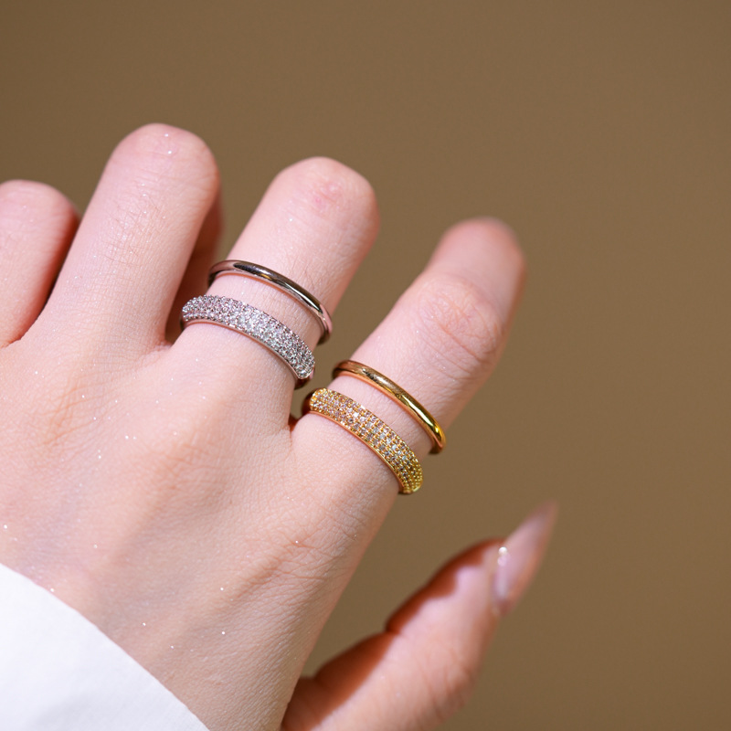 Cross-Border European and American Exaggerated Double-Layer Zircon Ring Ins Niche Simple Circle Open Metal Full Diamond Ring