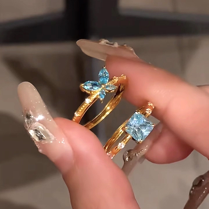 Little Red Book Explosions Escape Princess Phantom Elf Sea Blue Butterfly Ring Fashion Light Luxury Sapphire Butterfly Ring