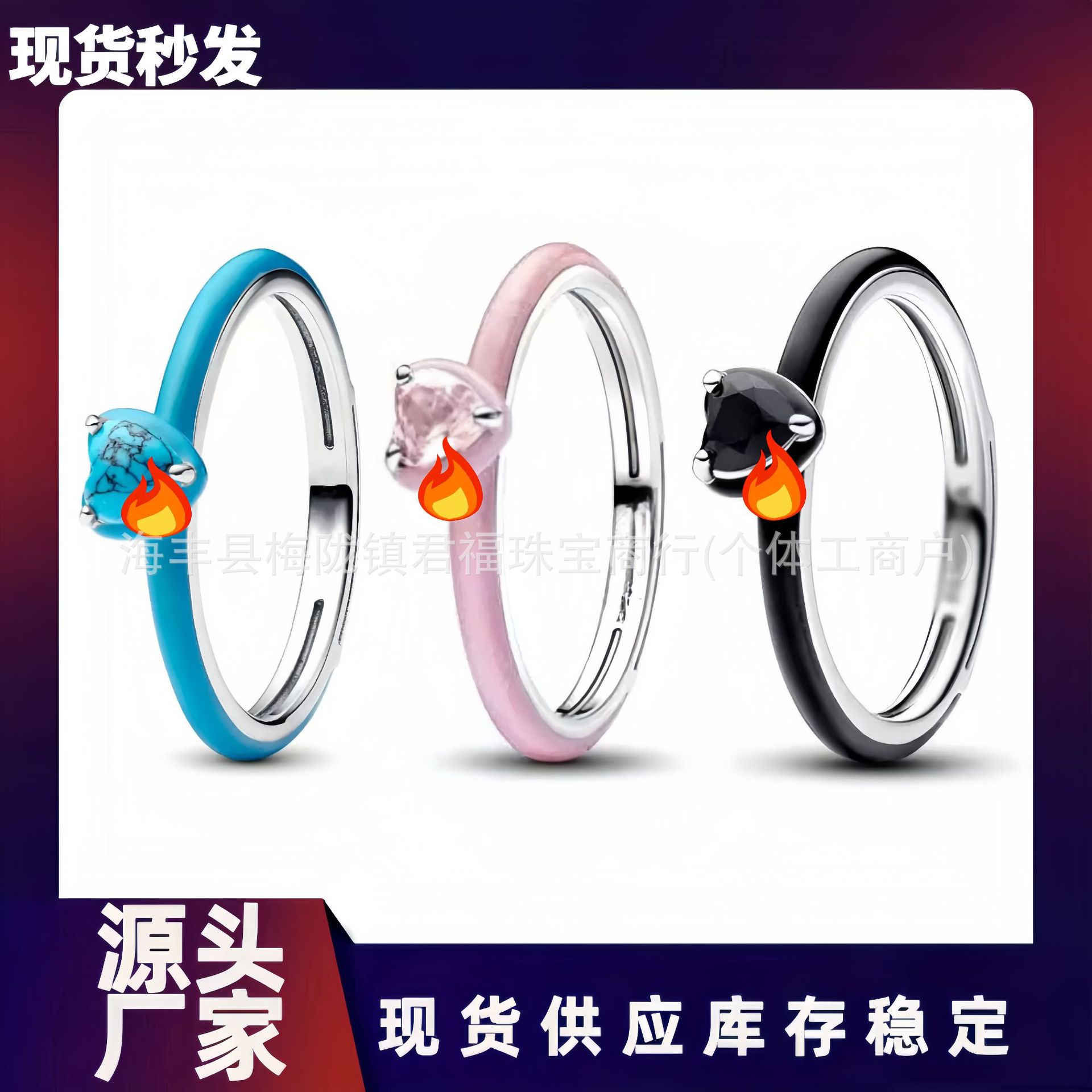 Panjia Dora S925 White Copper Silver-Plated Turquoise Heart Pink Black Ring Fashion Niche Versatile New Product