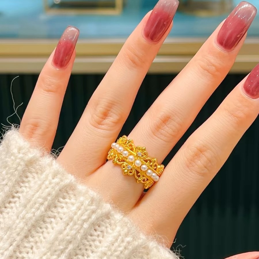 New Vietnamese Sand Gold Elegant, Fashionable and Popular, Antique Lace Pearl Ring, Gift for Best Friend, Girlfriend and Sister