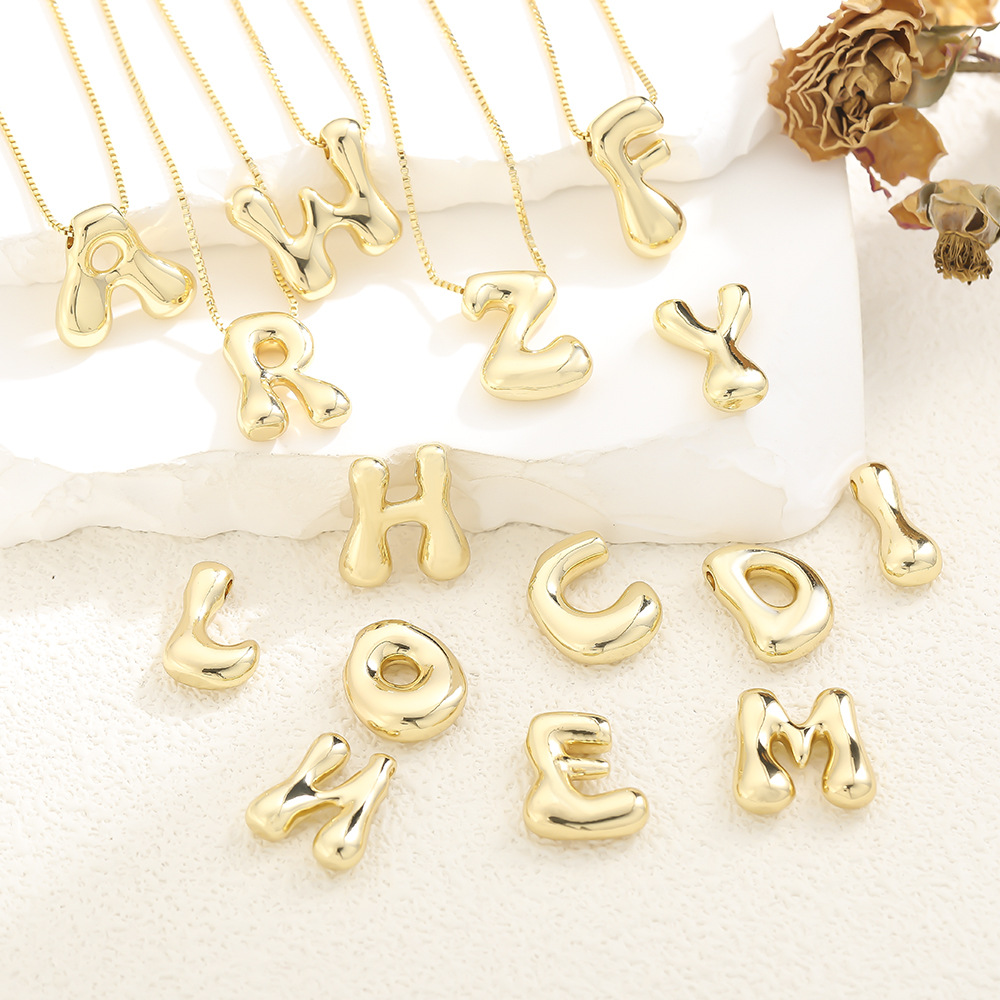 Cross-border copper plated 18K real gold cute Q version smooth bubble chubby 26 English letters pendant necklace jewelry