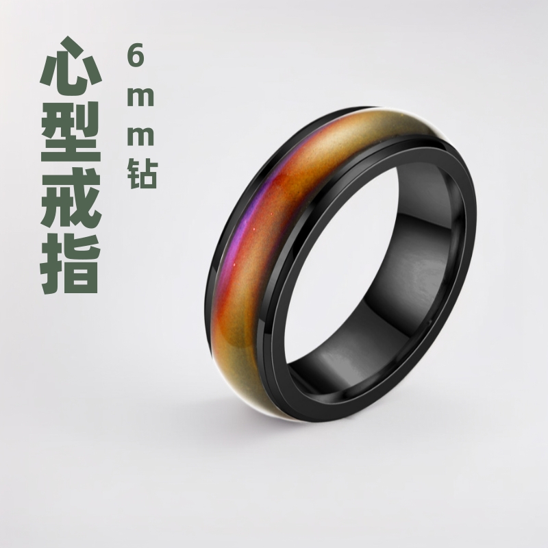 Temperature-Sensitive Color-Changing Ring 6mm Couple Ring Stainless Steel Jewelry Student Gift Temperature-Sensitive Letter Ring