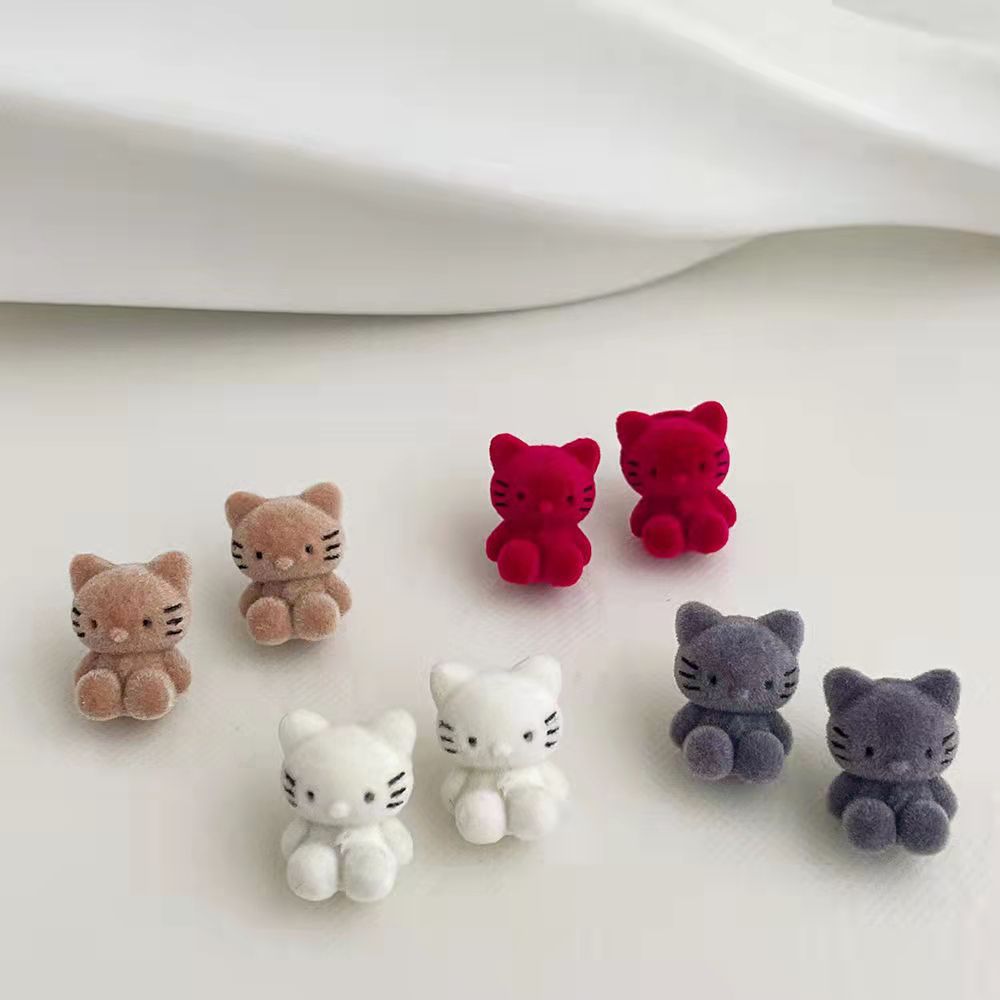 S925 Silver Needle Korean Flannel Cat Earrings Niche Cartoon Design Ear Studs Women's Autumn and Winter Cute Girl Earrings