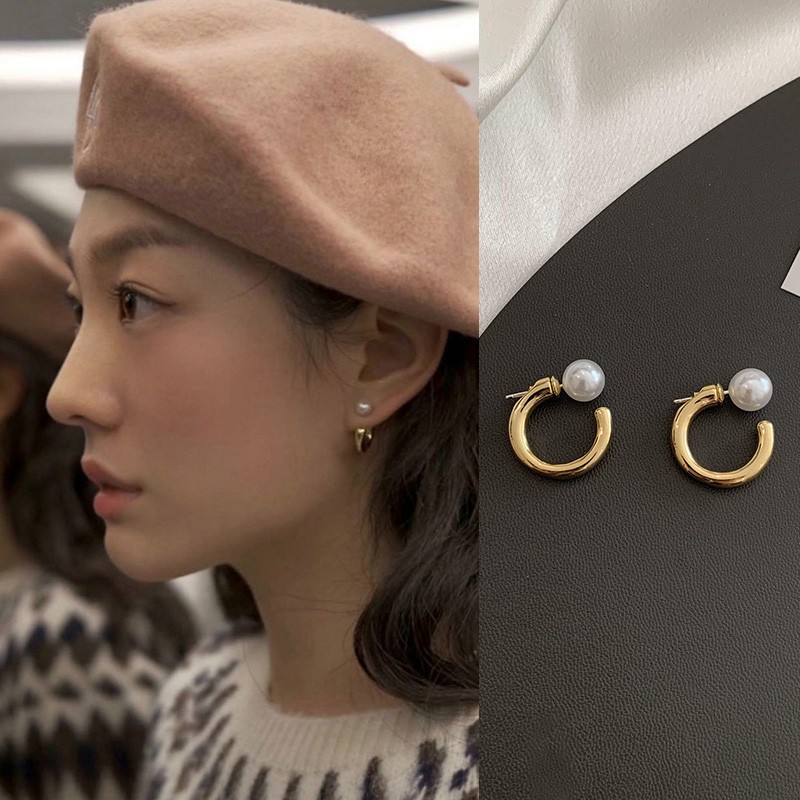 A Pair of C-Shaped Pearl Earrings with a Niche Design, High-End Cold Style Korean Earrings, Personalized Earrings