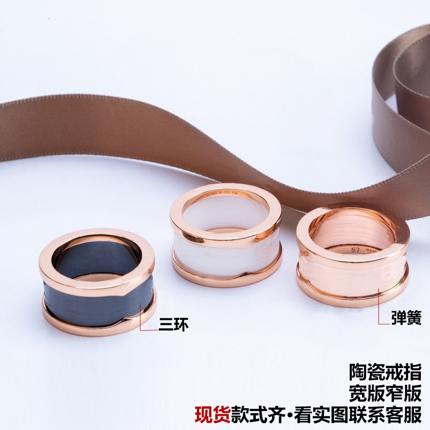 Baojia Little Red Black Ceramic Spring Ring Couple European and American Fashion Narrow Edition Charity Wide Edition White Ceramic Ring