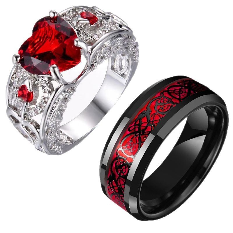 Cross-border AliExpress wish ring couple pair ring zircon heart-shaped female ring dragon ring jewelry factory direct sales