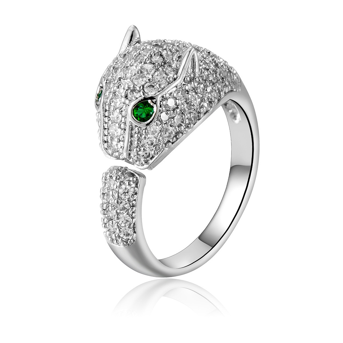 Leopard Head Full Diamond Women's European and American Exaggerated Stylish Trendy Open Index Finger Ring Niche Design Sexy Style Ring Women's Ring