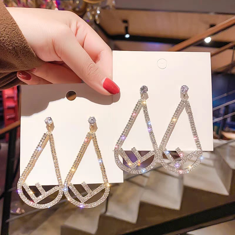 S925 Silver Needle Korean High-end Sense Letter Full Diamond Earrings Women's Elegant Internet Celebrity Slimming Atmospheric Light Luxury Ear Accessories Trendy