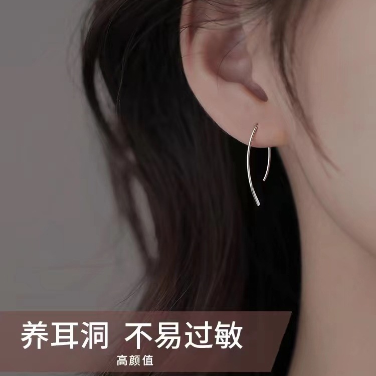 Line Earrings Light Luxury 2024 Explosive Ear Holes Ear Studs Niche Advanced Earrings