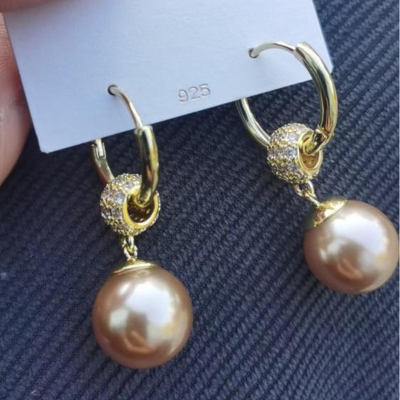 Korean Retro Diamond-Encrusted Exquisite Champagne Pearl Tassel Earrings Niche Design Internet Celebrity Same Style Versatile Ear Jewelry