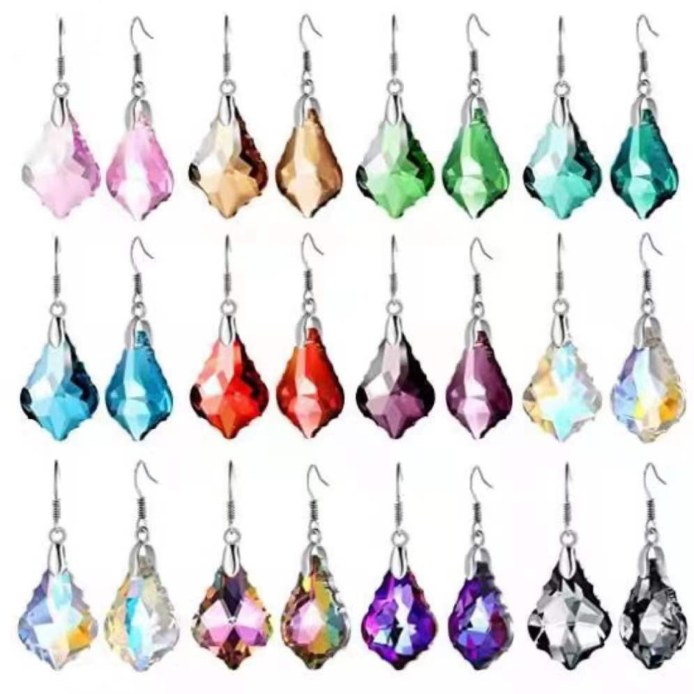 12 Color Youth Fashion Sweet OL Simple Maple Leaf Crystal 925 Ear Hook Female Distinctive Earrings Tourist Attraction Memorial