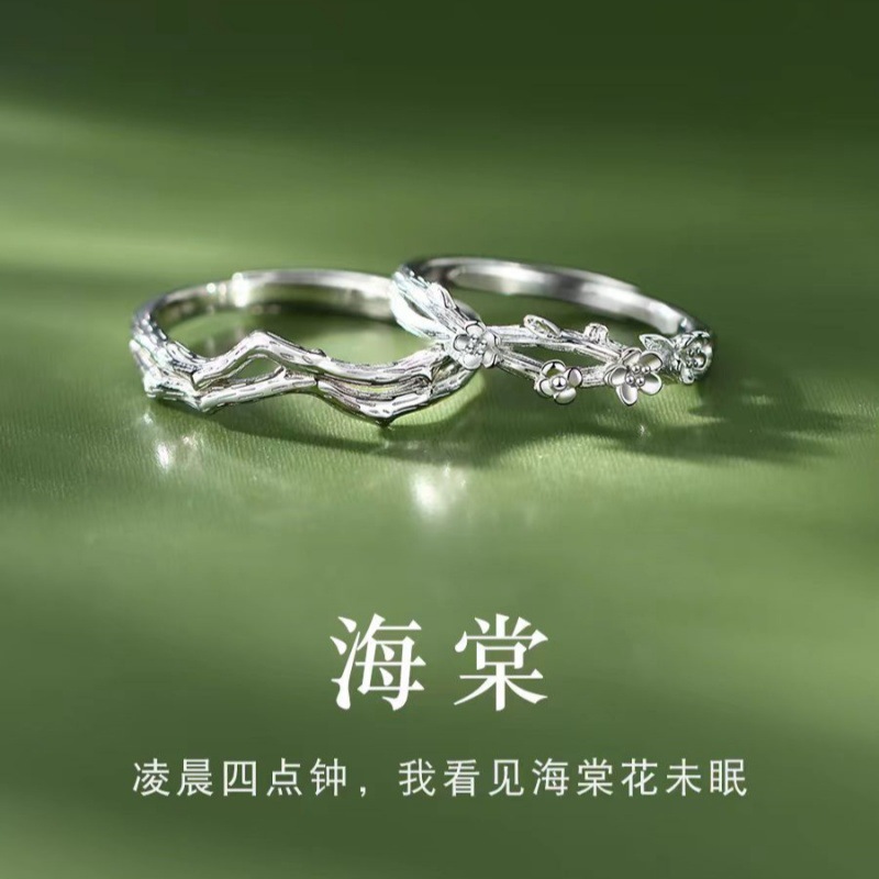 Begonia Couple Ring Pair of Niche Personality Simple Niche Men's and Women's Pair Ring Gift for Girlfriend