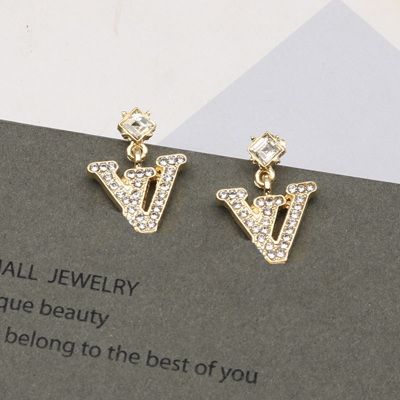 New Style Mule/V Letter Full Diamond Earrings European and American Fashion Elegant Accessible Luxury Earrings Classic Exquisite and Luxurious Ear Jewelry