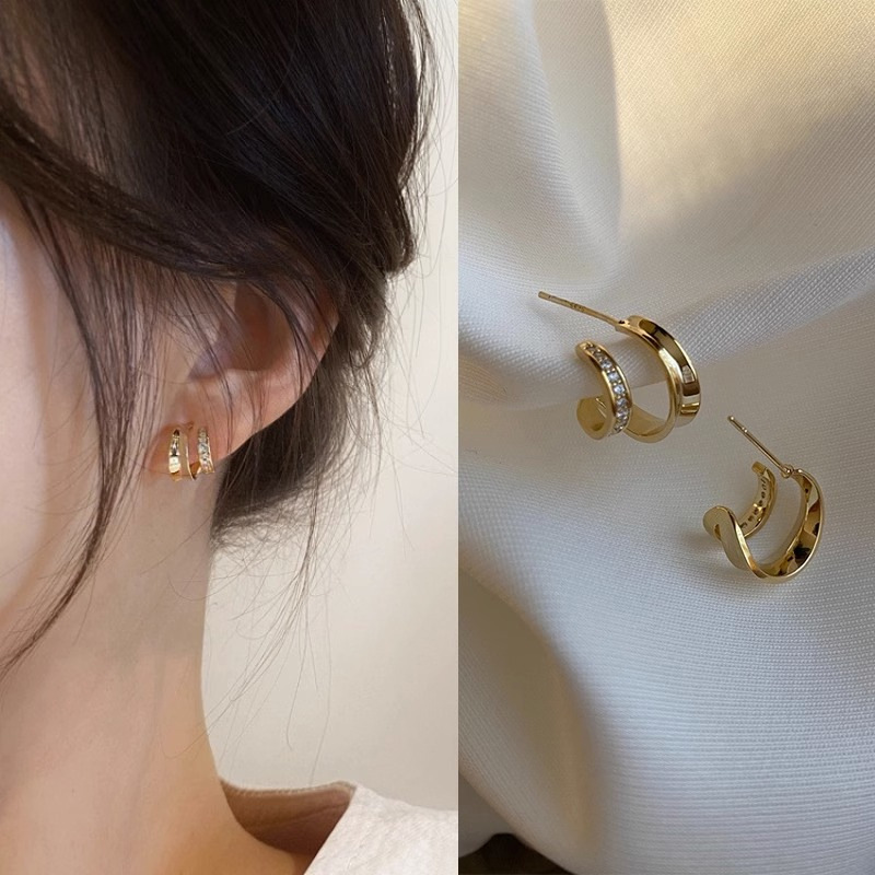 Sterling silver needle stud earrings female niche design sense South Korea earrings small fragrance style earrings light luxury half ring high-grade temperament earrings