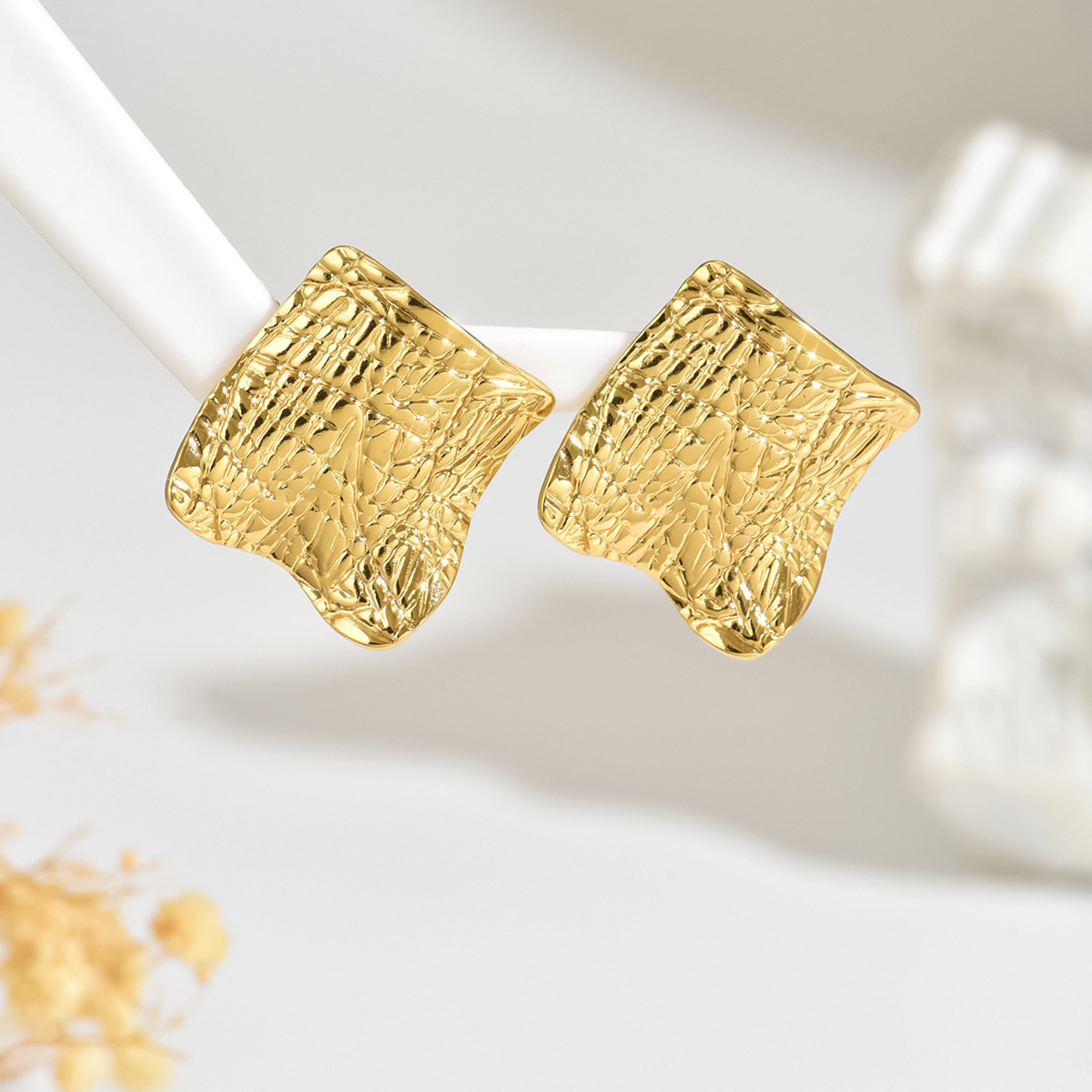 Temu Hot-Selling Stainless Steel Geometric Earrings, Fashionable Elegant, Versatile Pleated Asymmetrical Earrings, High-End Jewelry