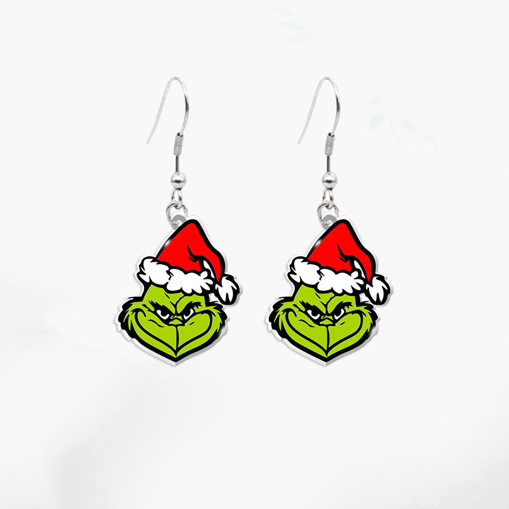 Cross-border new Christmas Grinch earrings cartoon green elf earrings steal Christmas pendant earrings