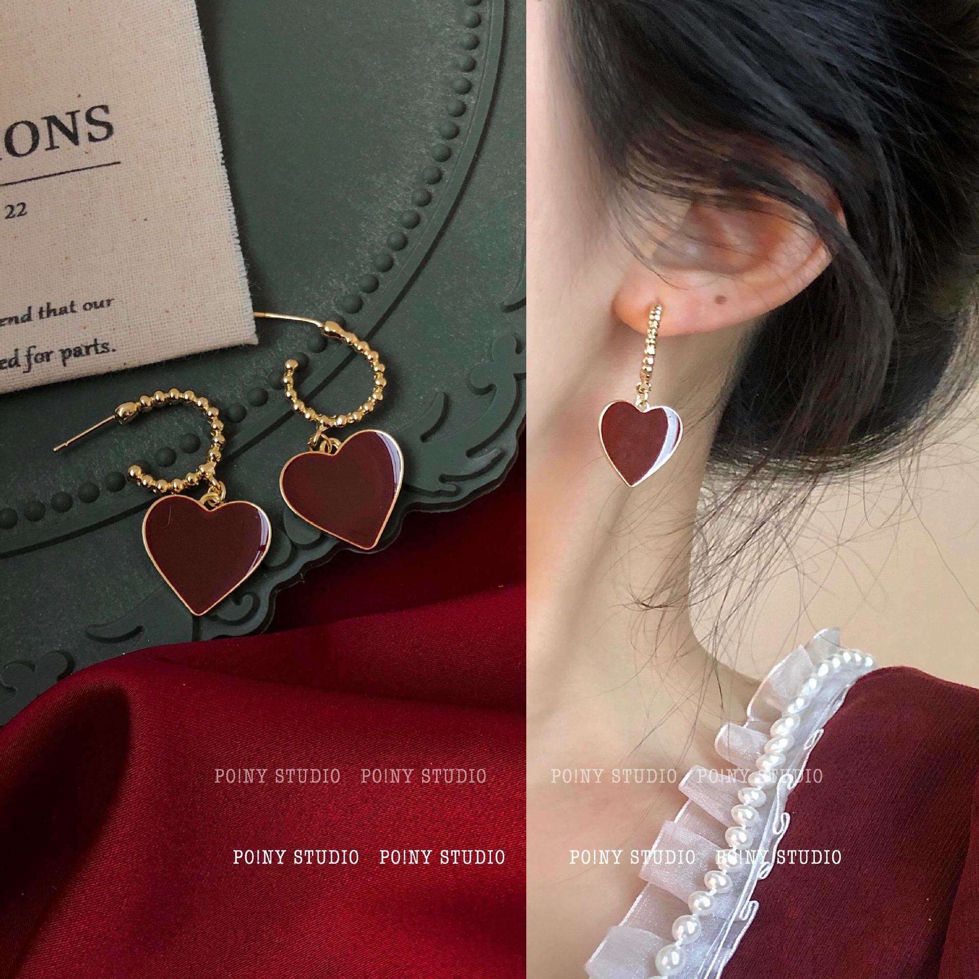 Retro Simple Earrings 2022 New Red Love Pendant Women's Korean Elegant Internet Celebrity Earrings New Year Earrings