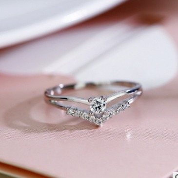 Cross-border Hot New Flash Diamond AAA Zircon Ring Women's European and American Creative V-shaped Heart-shaped Exquisite Engagement Luxury Ring