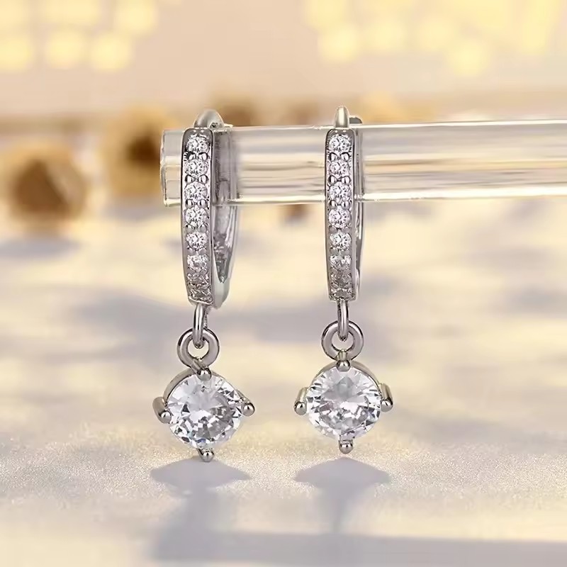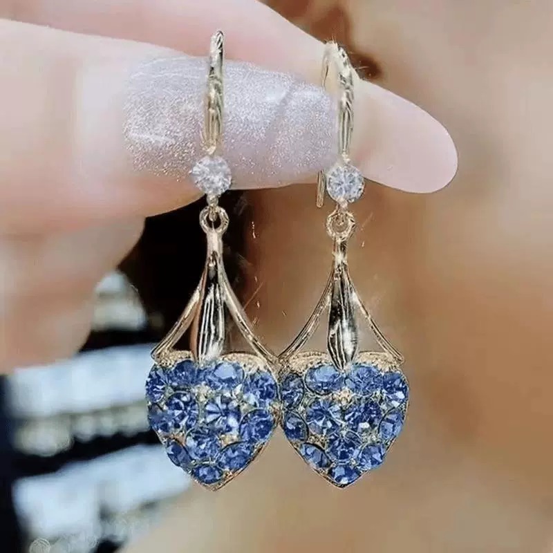 Fashionable Korean Style Full Diamond Drop Earrings, Earrings, Heart of the Ocean, Same Style Earrings, Manufacturer Accessories