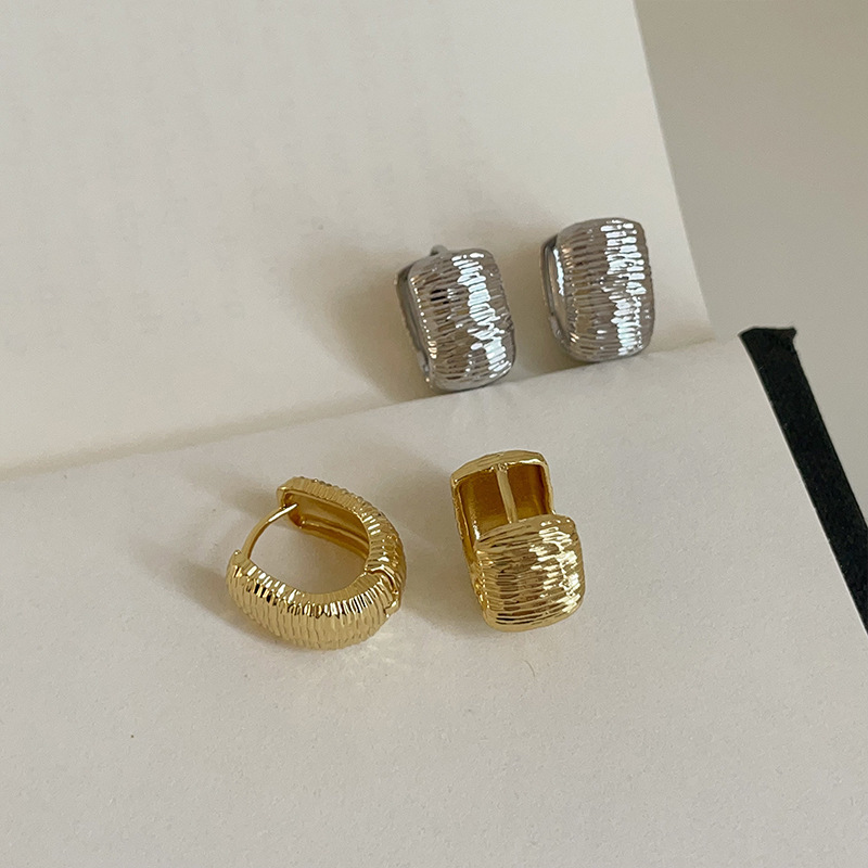New European and American Cross-Border Textured U-Shaped Earrings, Geometric Metal Versatile Earrings, High-End Double-Sided Square Earrings