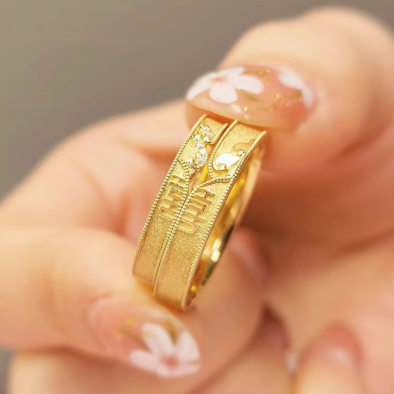 Ancient Double Happiness Couple Ring Men's and Women's Pair of Little Red Riding Book Same Section Inheriting Happy Character Pair Ring Gold Opening Ring