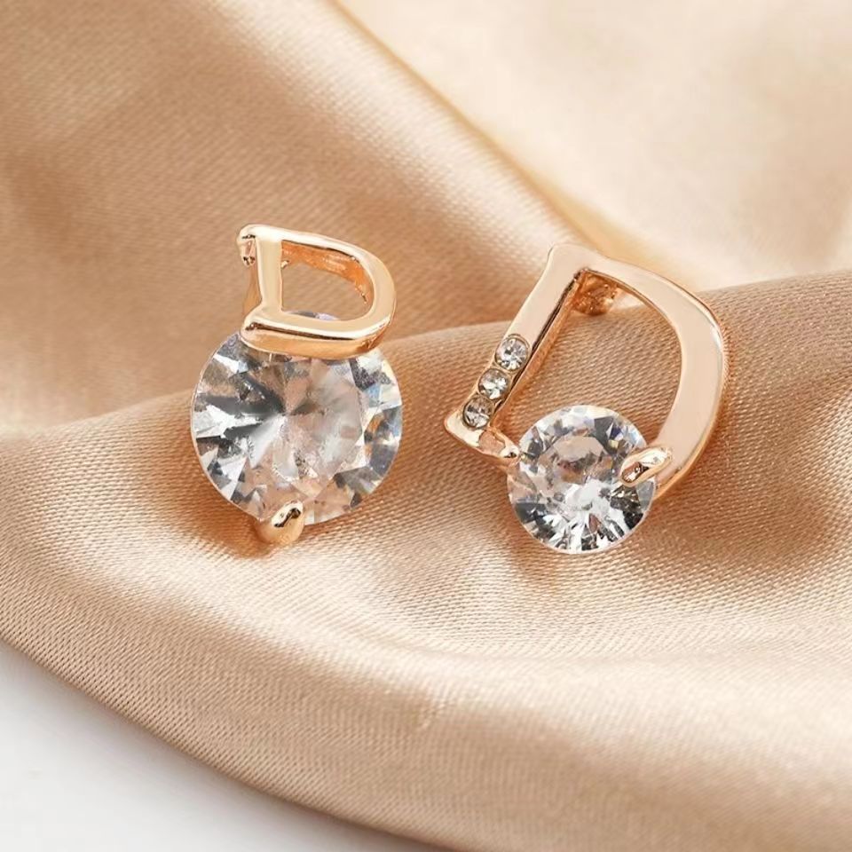 2023 New Small and Exquisite Zircon D Letter Silver Needle Earrings Korean Simple High-end Elegant Earrings for Women