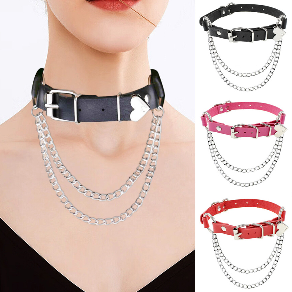 European and American Punk Gothic PU Leather Irregular Collar Necklace Distinctive Heart Love Chain Collarbone Necklace