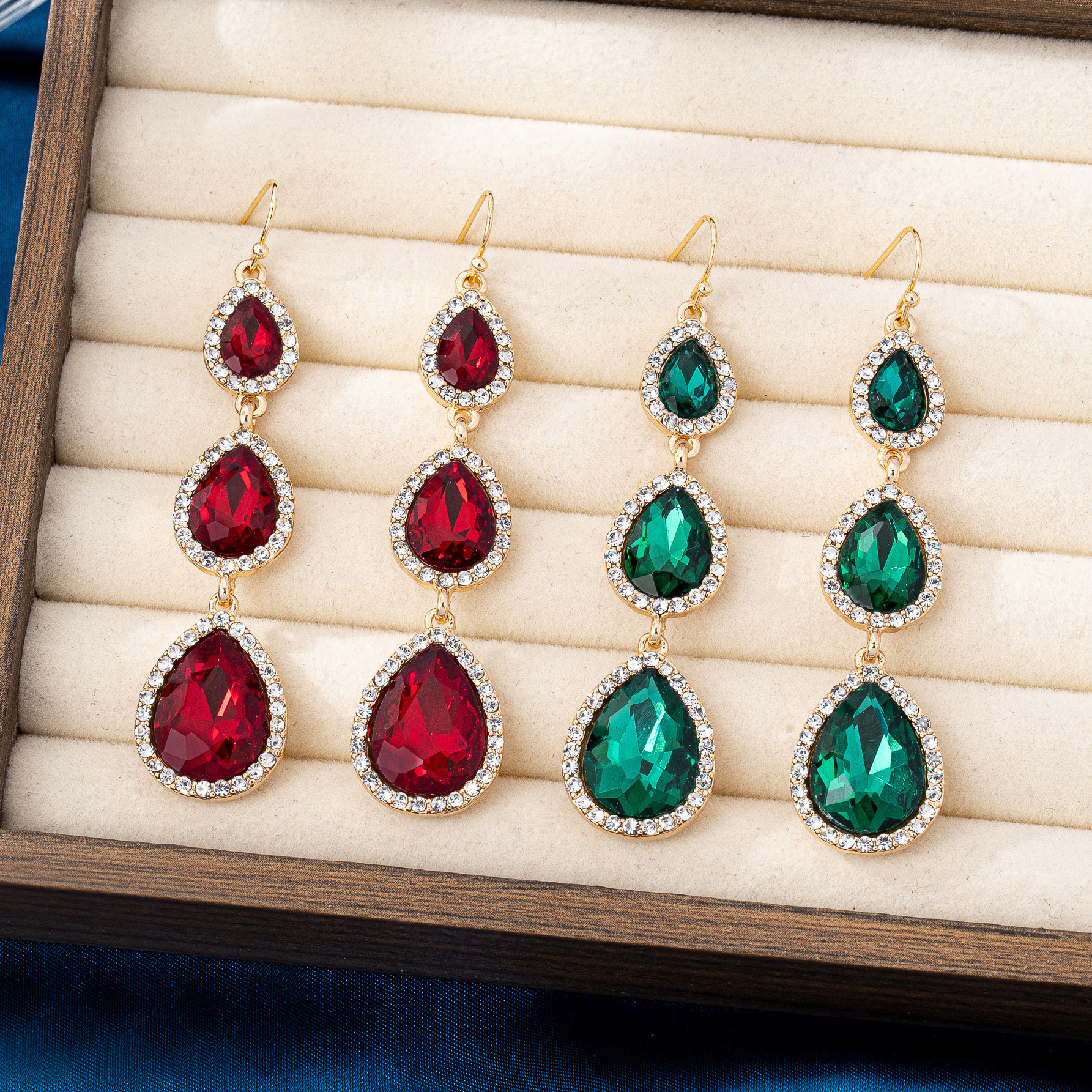 Cross-Border Export Fashion Long Water Drop Diamond Earrings Elegant Shiny Full Diamond Geometric Crystal Earrings Earrings