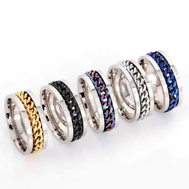 Cross-border trend personality transfer non-fading jewelry fashion stainless steel beer bottle rotation decompression chain ring