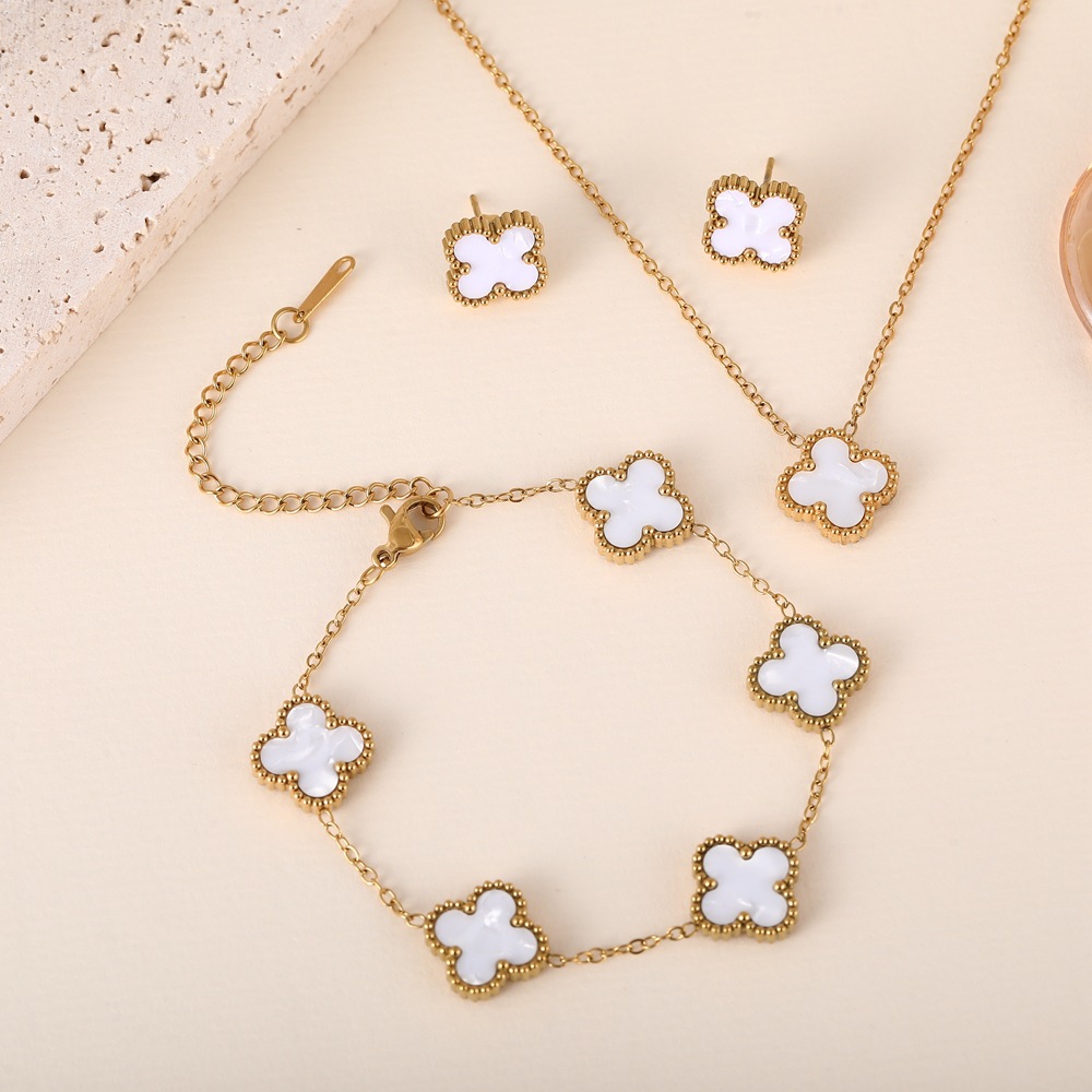 Titanium Steel Non-Fading Double-Sided Four-Leaf Clover Set Necklace for Women, Fashionable, Elegant, Light Luxury, High-End Feel, Niche Bracelet Wholesale