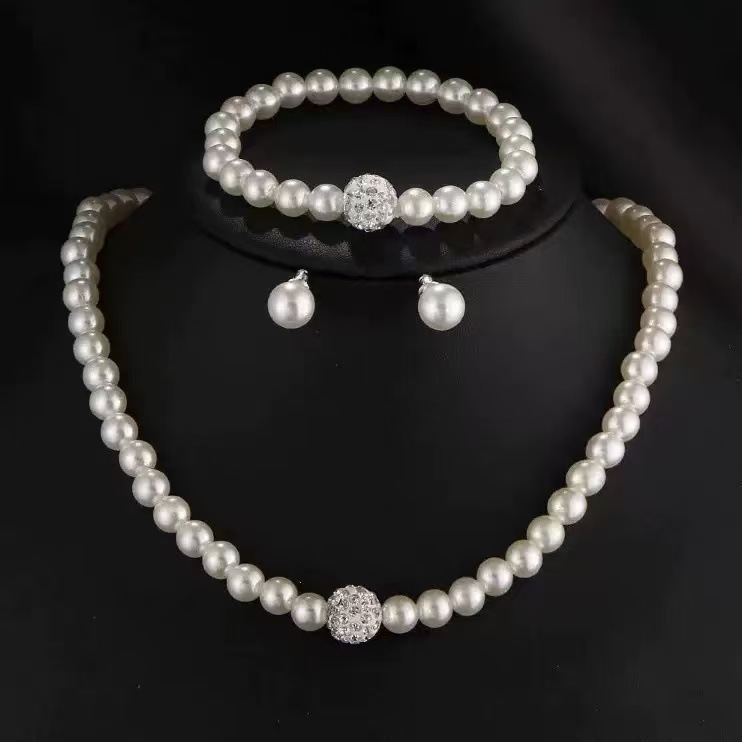Fashion imitation pearl jewelry suit women's necklace earrings bracelet three-piece holiday wedding cross-border European and American accessories