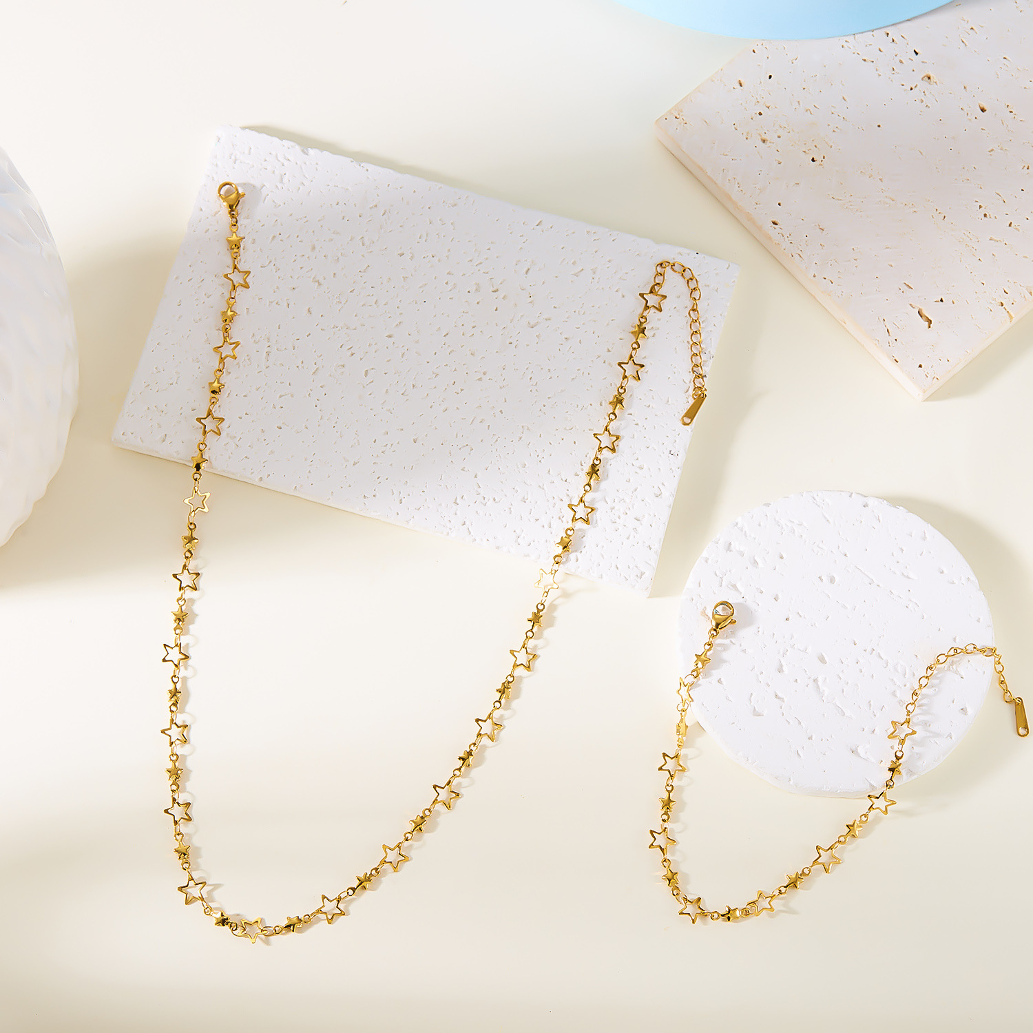 European and American metal style fashion commuter bracelet does not fade niche all-match stainless steel five-pointed star chain bracelet necklace