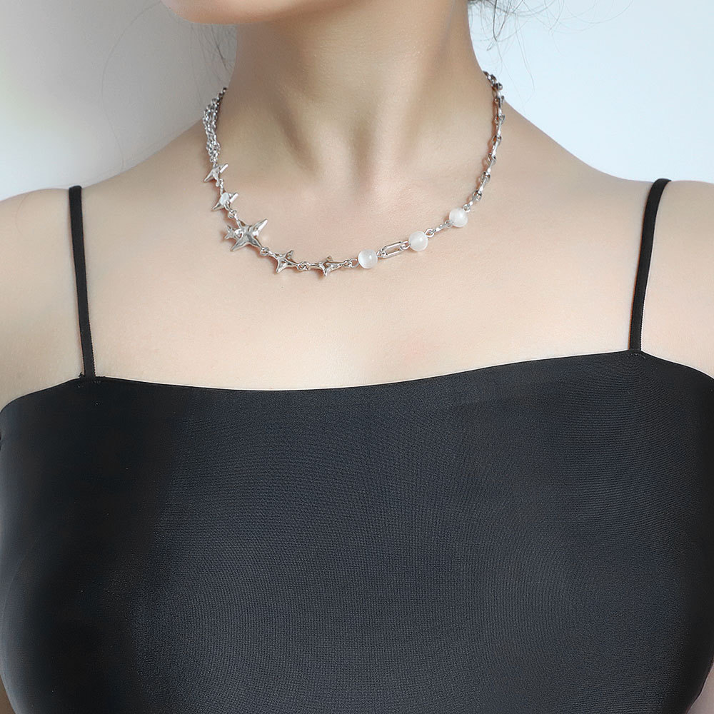 Niche design Mans star necklace titanium steel stitching four Mans star clavicle chain tide cool hot girl neck chain Hip Hop disco accessories
