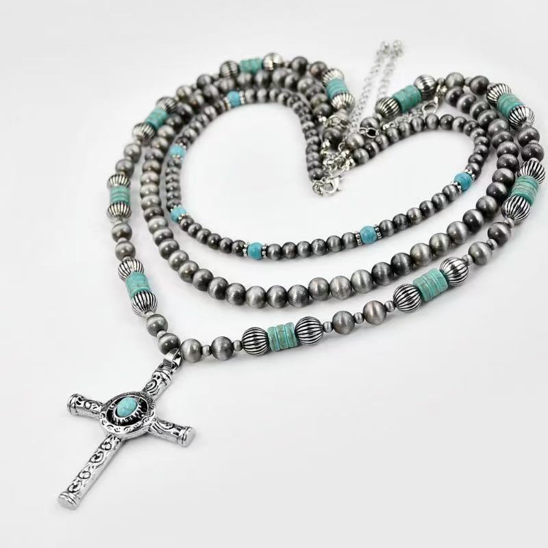 European and American Cross-Border Jewelry Bohemian Style Turquoise Beaded Clavicle Chain Versatile Ethnic Style Turquoise Necklace 1 Piece
