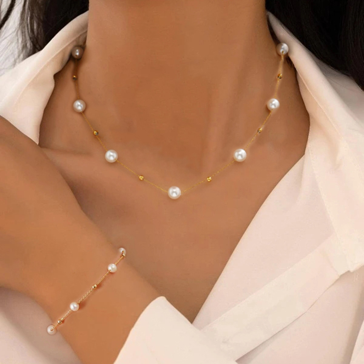Cross-border Hot-selling Fashion Simple Style Imitation Pearl Necklace Collar Chain Light Luxury Ins Style Holiday Collar Women Wholesale