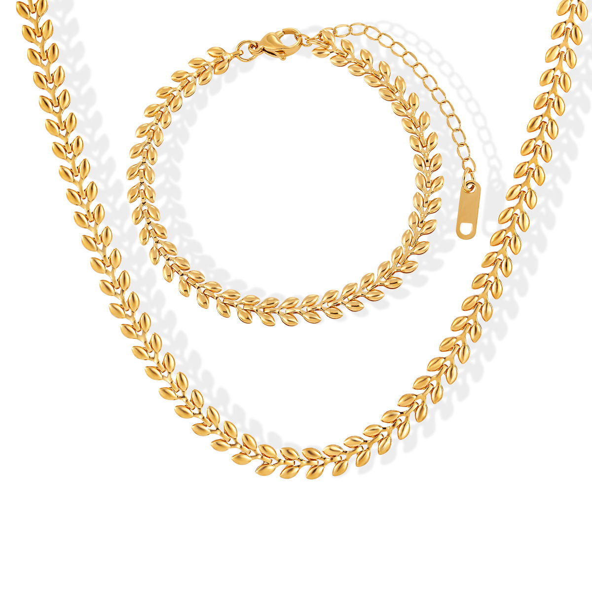 European and American cross-border simple wheat ear leaf titanium steel necklace female wheat ear bracelet 24k gold plated jewelry wholesale