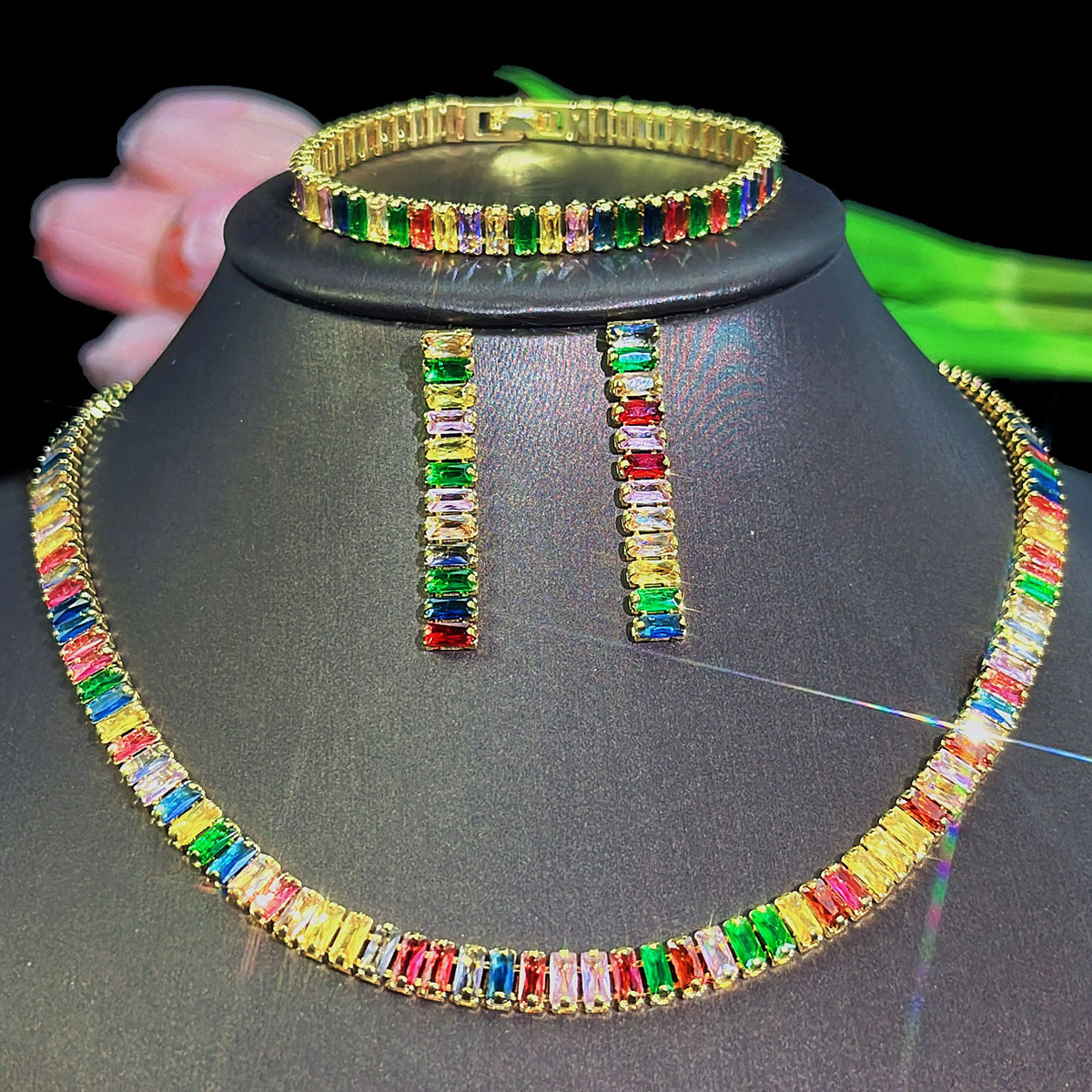 Light Luxury High-End Dopamine Colorful Zircon Necklace Niche Trendy Popular Bracelet Temperament European and American Set of Accessories
