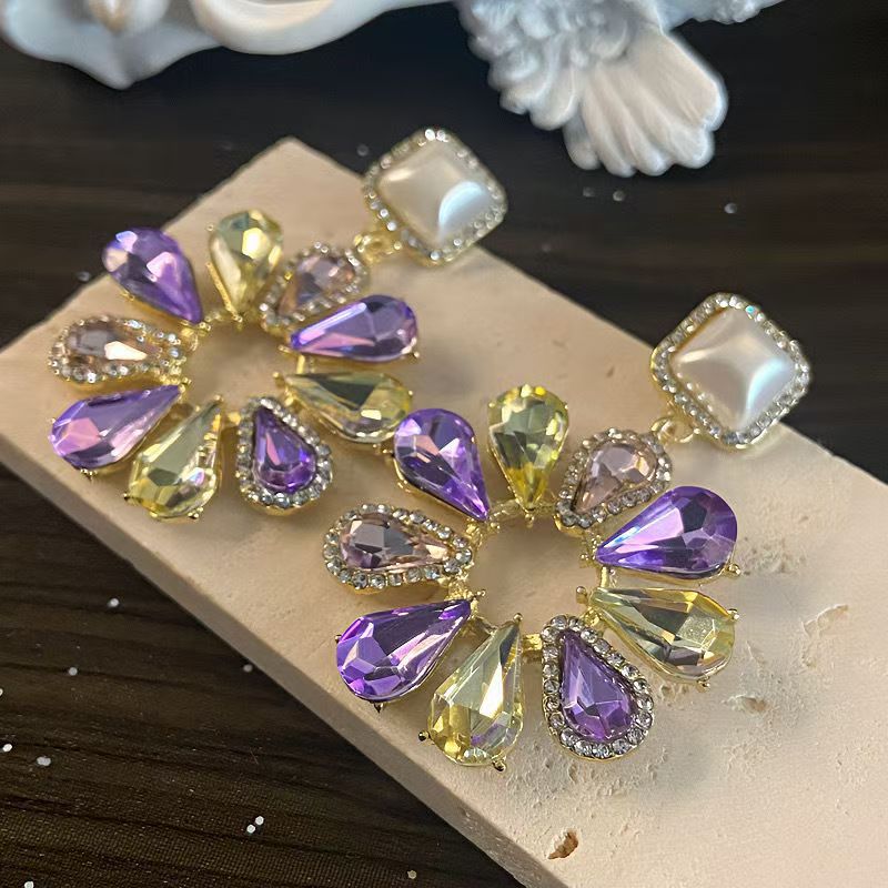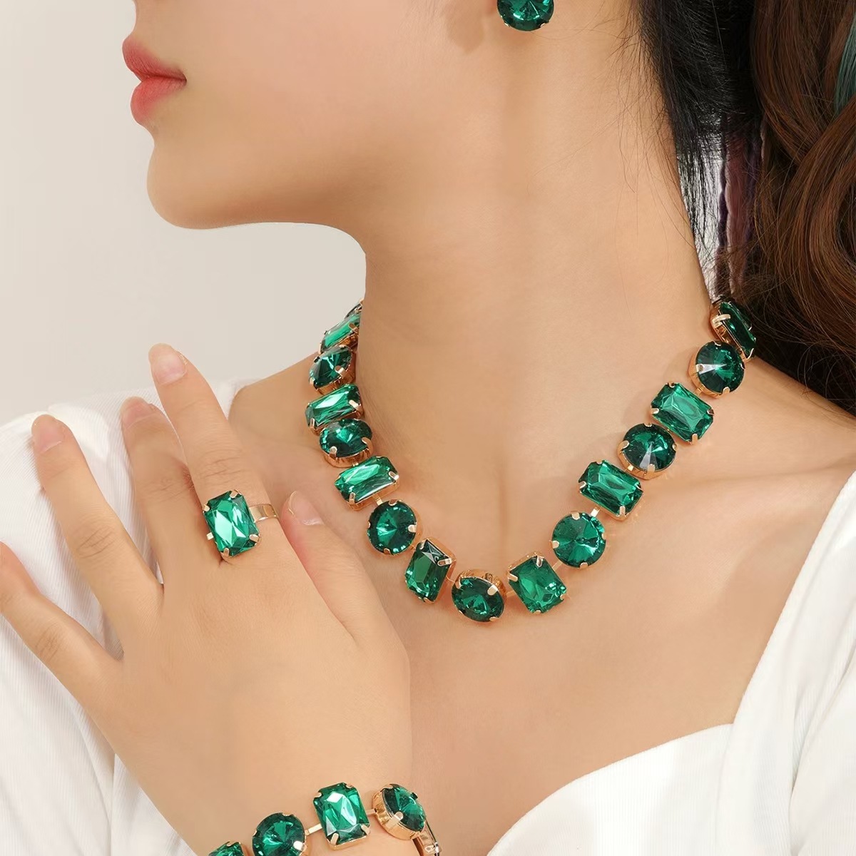 European and American Fashion High-end Retro Necklace Temperament Emerald Diamond Necklace Dress Accessories Necklace Earrings Set