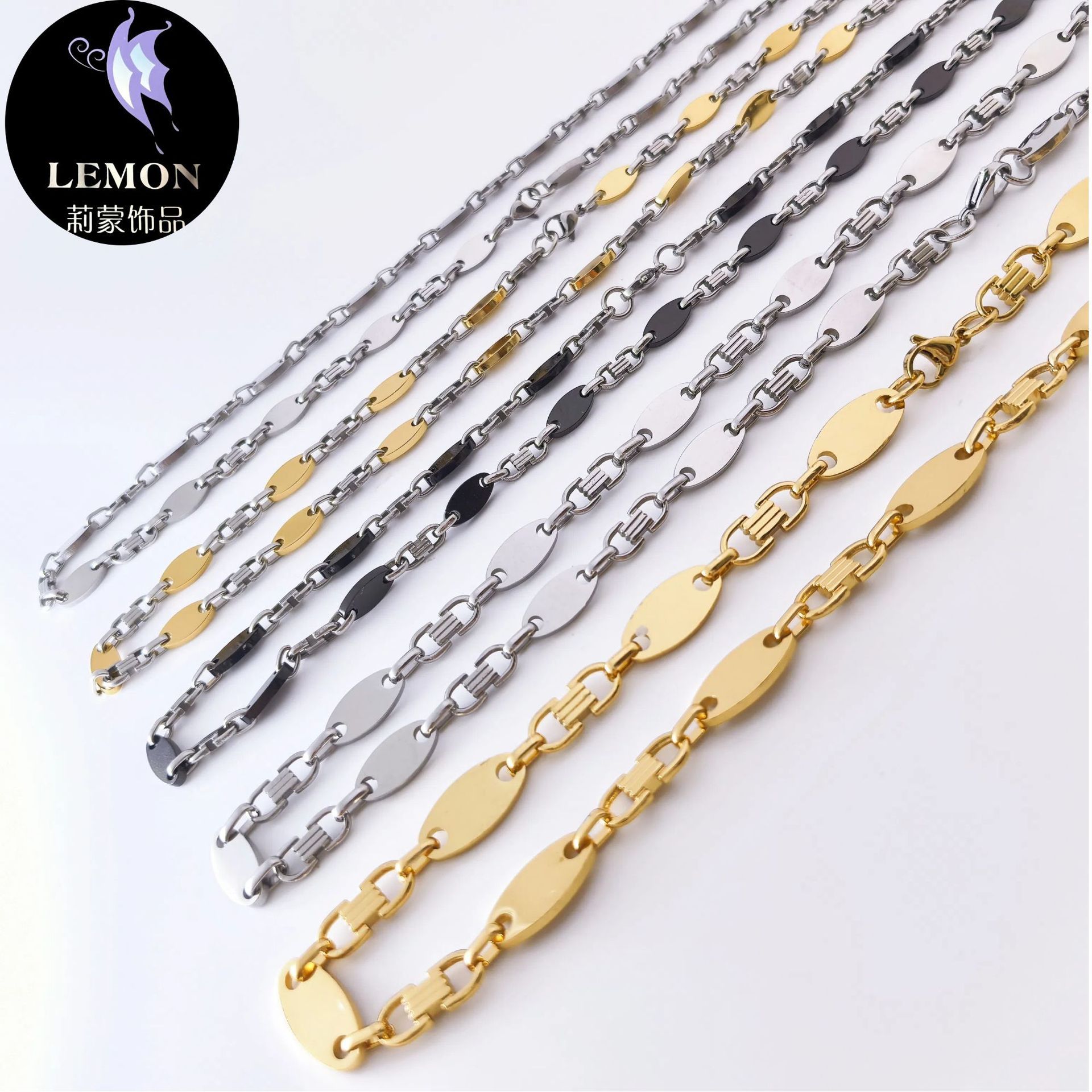 Cross-border Hot Selling Trendy Men's Handmade Chain Fashion Atmospheric Necklace Imperial Chain Gone Stainless Steel Back Flat Chain suit