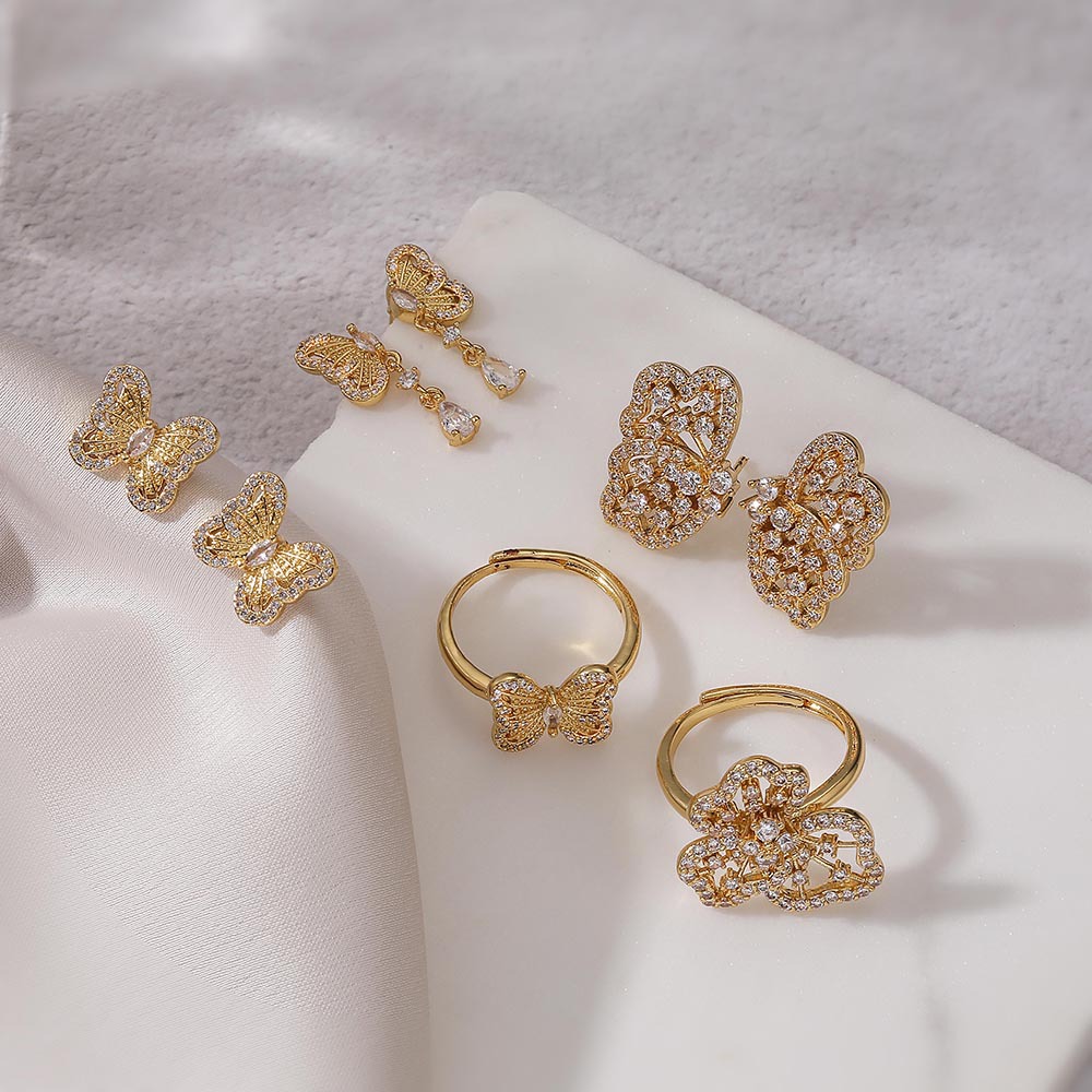HECHENG Jewelry Niche Entry Luxury Copper Zirconium Bow Earrings Ring Necklace Elegant Super Fairy Jewelry suit