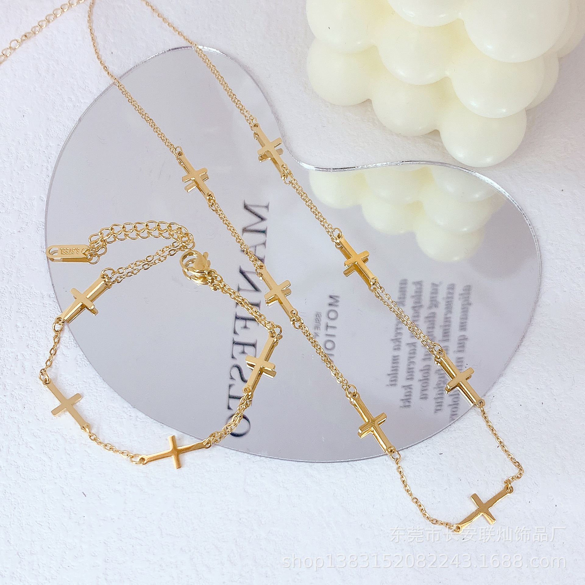 Cross-border jewelry in stock wholesale French temperament cross bracelet necklace suit light luxury non-fading clavicle chain women