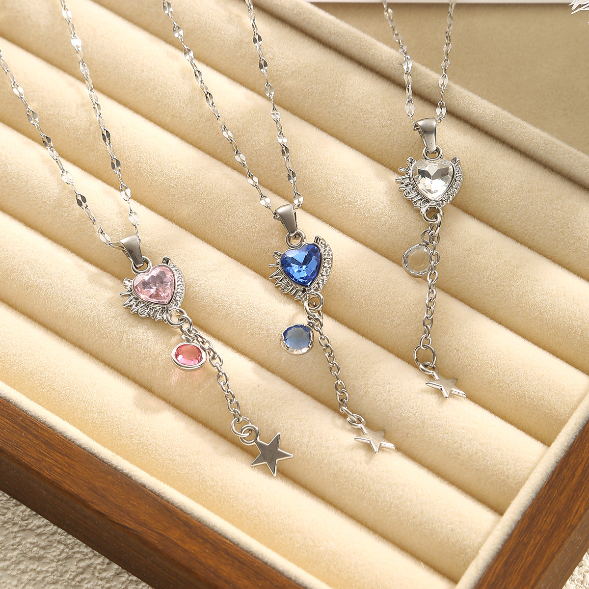 Light Luxury Niche Stainless Steel Jewelry Heart Tassel Necklace Economical Commuting Pendant Clavicle Chain Jewelry Set Batch