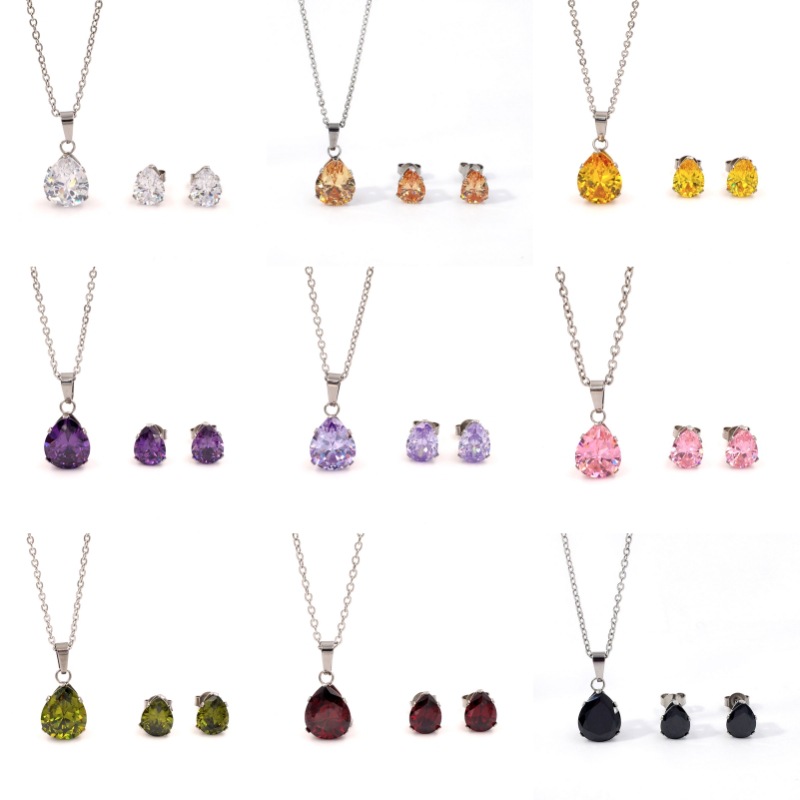Factory Direct Sales European and American Suit Stainless Steel Necklace Colorful Water Drop Zircon Small Fresh Clavicle Women's Titanium Steel Suit