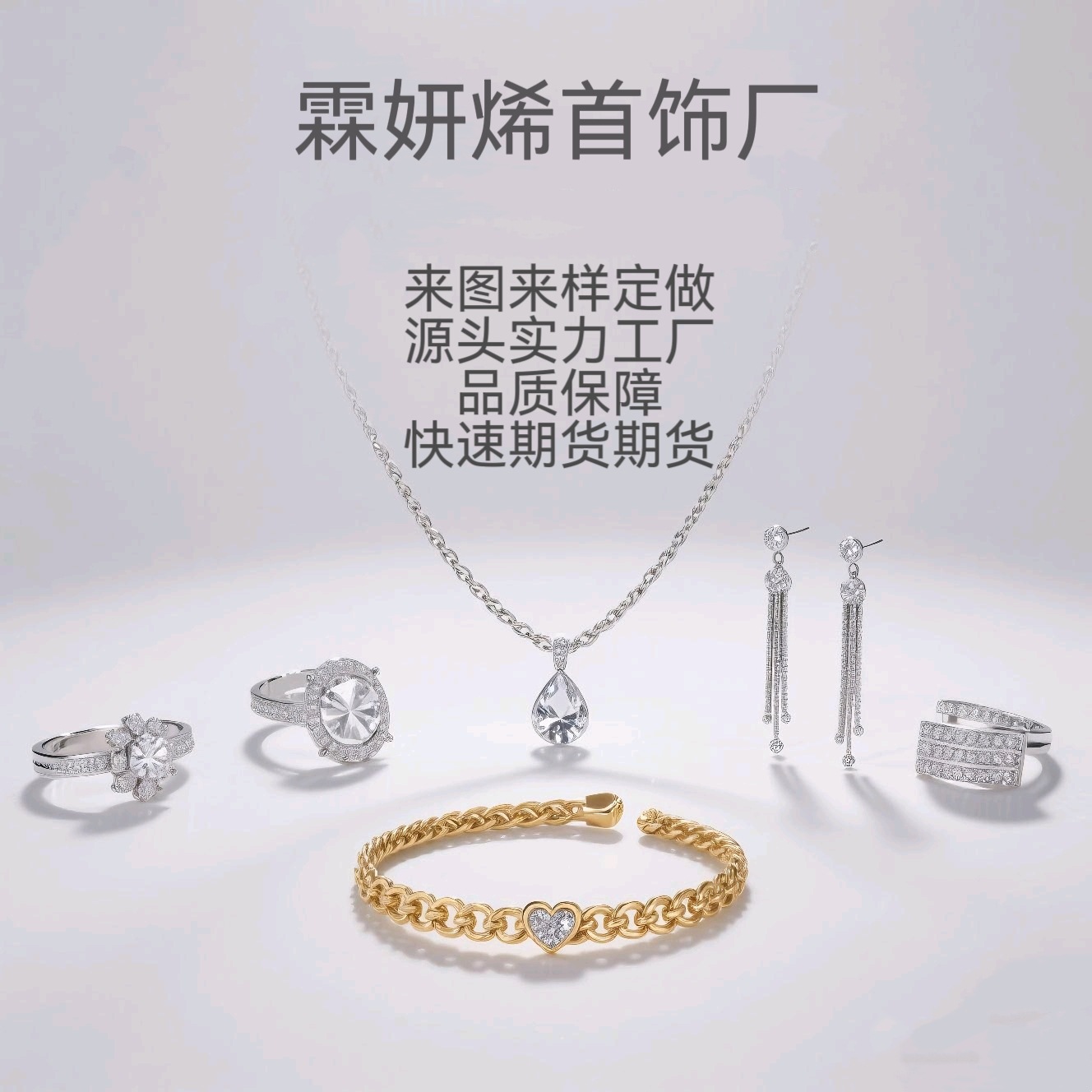 Cross-Border Popular Lin Yan En Jewelry Factory Four-Piece Set of Rings, Women's Necklace, Women's Copper and Silver S925 Material Source Factory