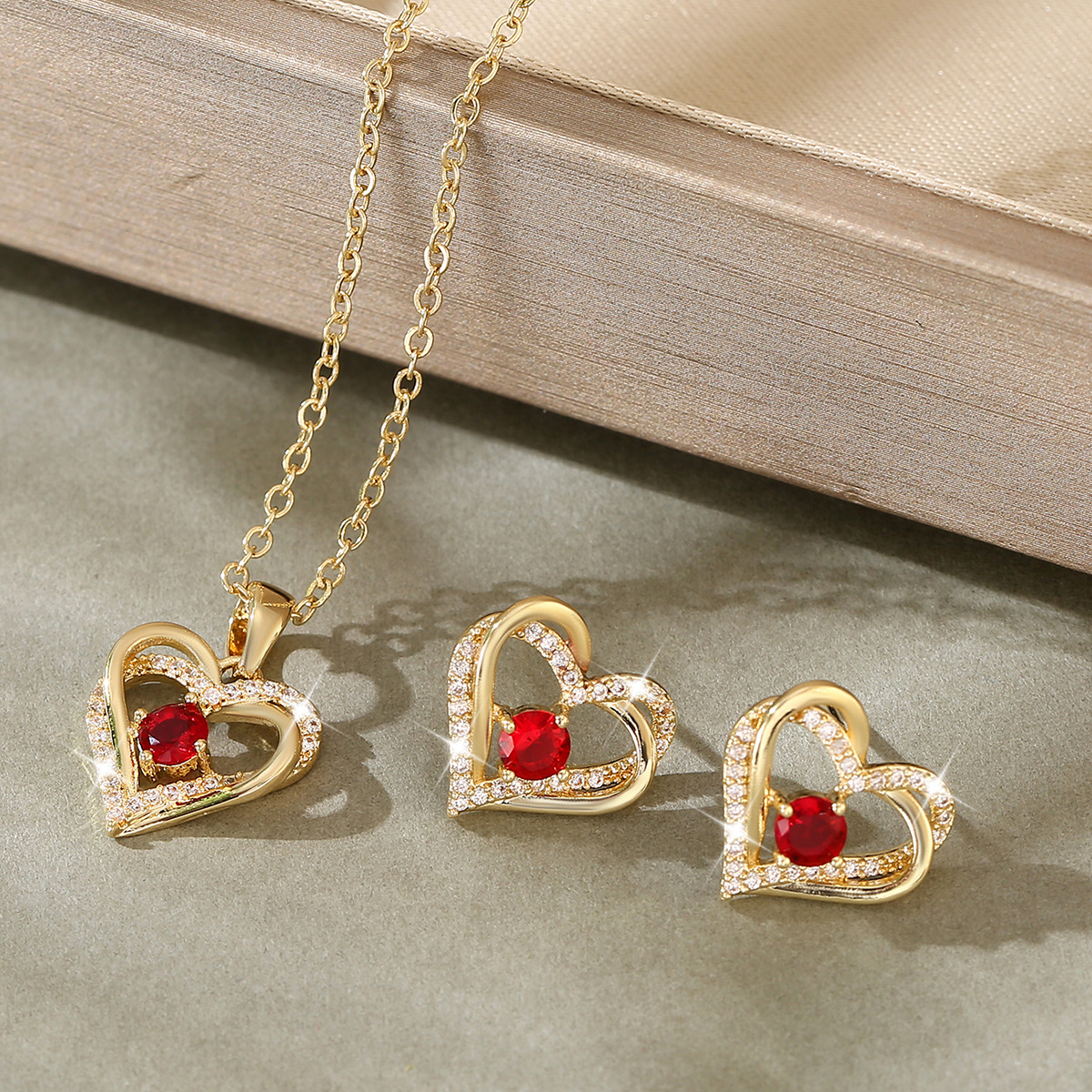 European and American luxury temperament copper inlaid zirconium heart-shaped stud earrings necklace female pendant sweet love bridal wedding jewelry suit